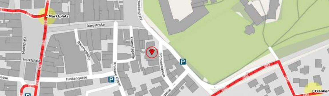 Die Praxis befindet sich im Stadtzentrum in der Nähe vom Schloss im "Haus der Gesundheit" (Frommengasse 2), unweit der Burgapotheke.
